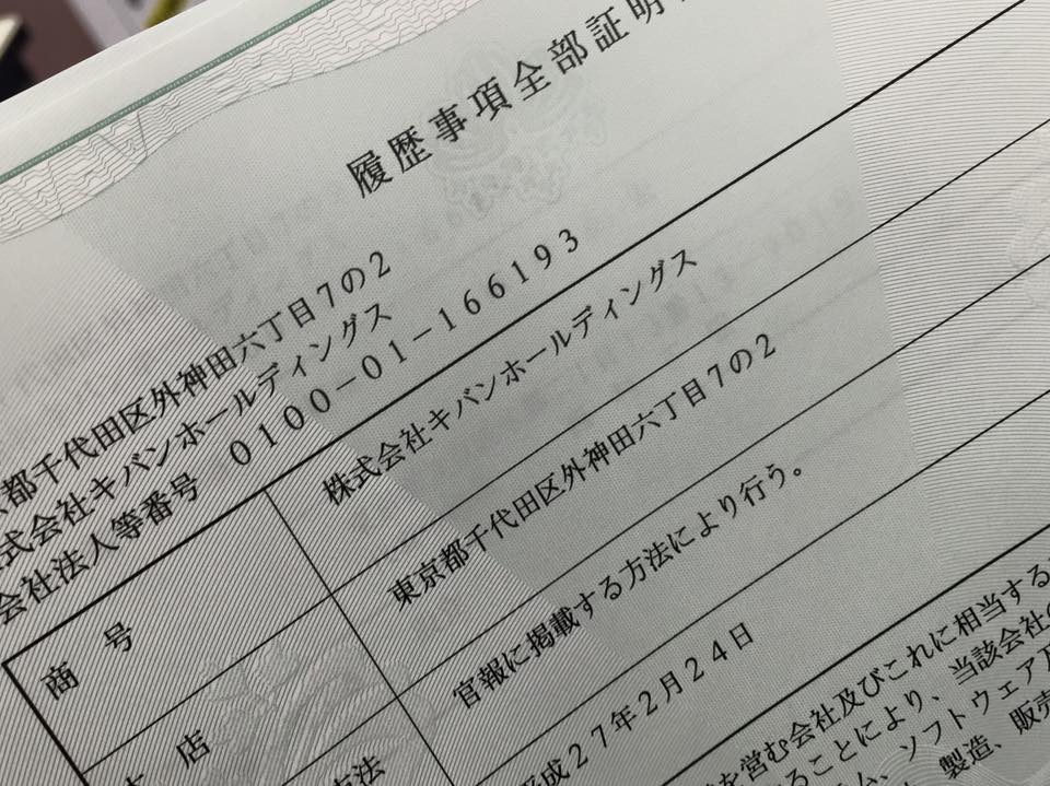 2015年2月24日カテゴリー:お知らせタグ:HD, キバンホールディングス, 持株会社, 設立登記